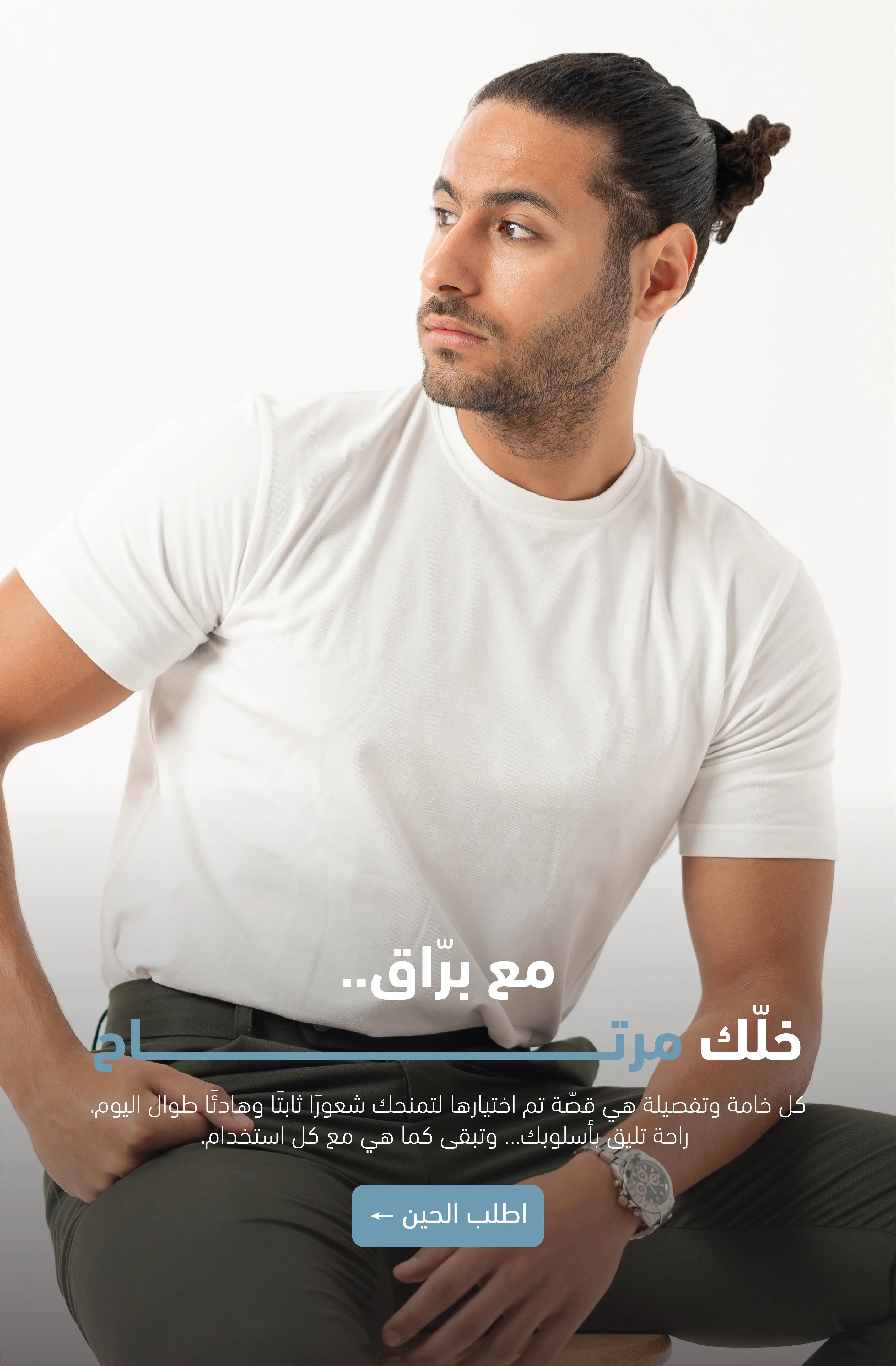 مهووسين بالراحة لدرجة إننا نختبر كل خامة وكل قَصّة بأدق التفاصيل — من نوع القماش (قطن، مودال، بامبو، بوليستر فاخر) إلى القَصّة اللي تحسها مفصلة على جسمك.